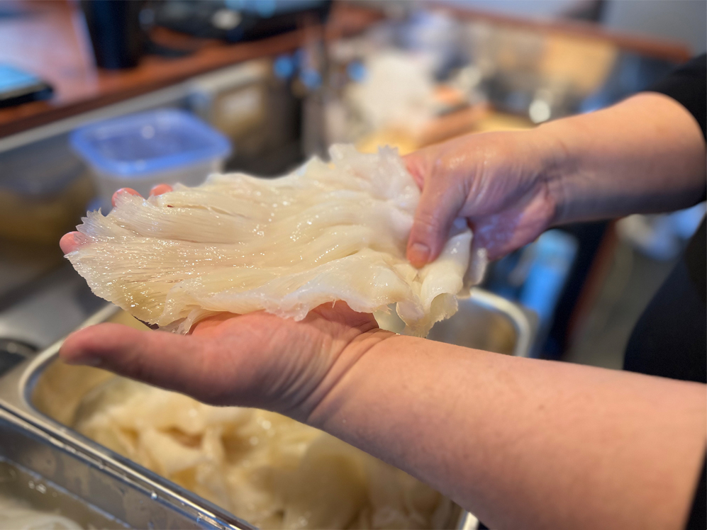 KUROMORI × Kesennuma KUROMORI × Kesennuma Fragments of a continuing relationship. 宮城県気仙沼の気嵐 気仙沼港とサメ 石渡商店 x KUROMORI KUROMORIの厨房 IKKEIKAKU x KUROMORI 宮城県は中華食材豊富 98%国産食材を使用 登米誉山鶏 と 角田齋藤豚 大島の柚 KUROMORIのフカヒレ